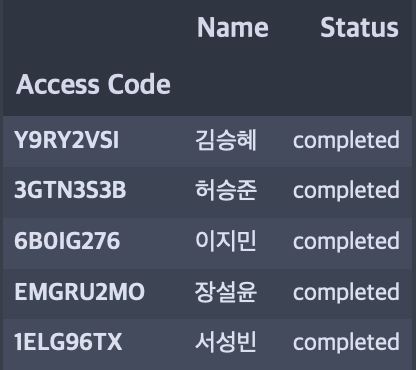 # Status의 종류에 따라 코치들의 실적을 확인합니다.